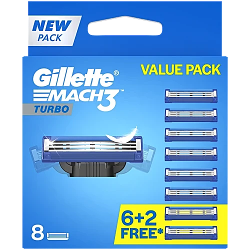 Gillette Mach 3 Turbo Manual Razor Blades for MenPack of 8 Cartridges, 8 pcs 6+2