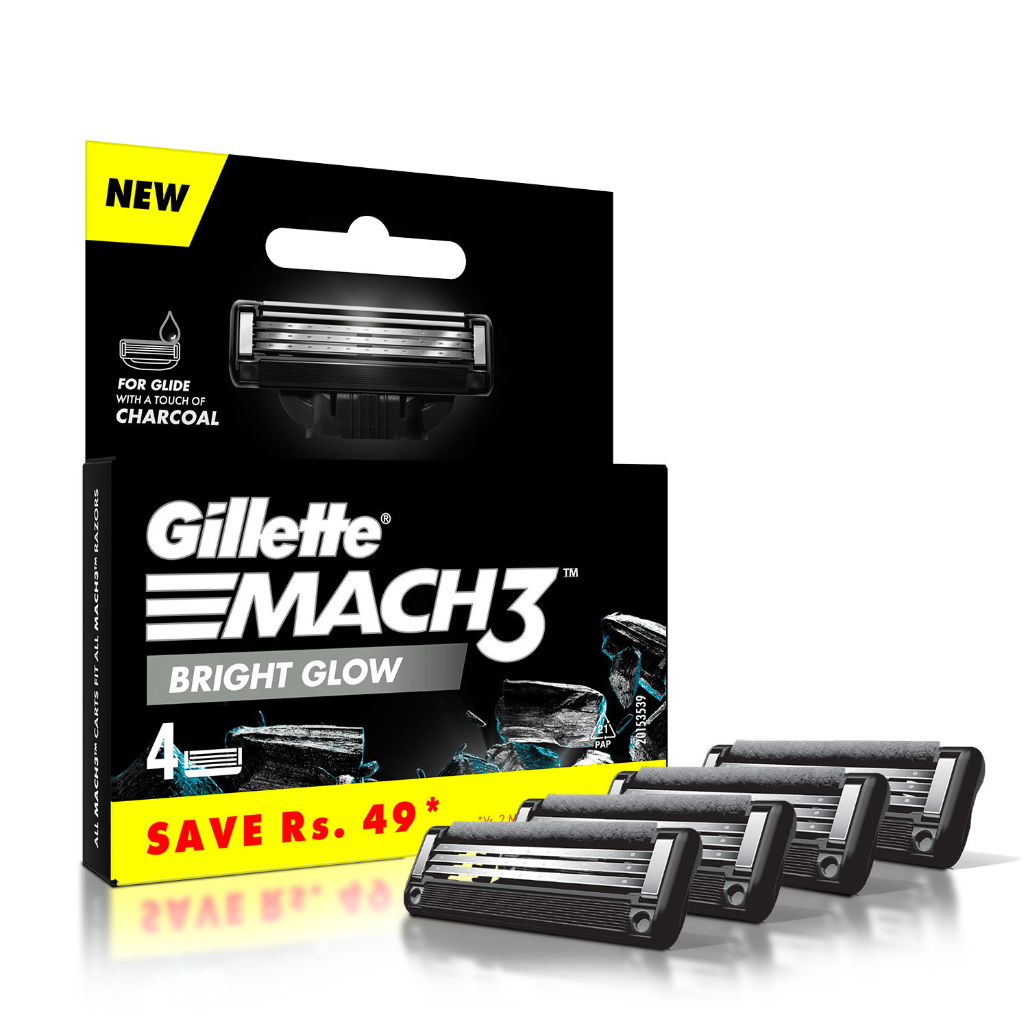 Gillette Mach3 Charcoal Shaving Razor Blades, 4 Blades Bright Glow