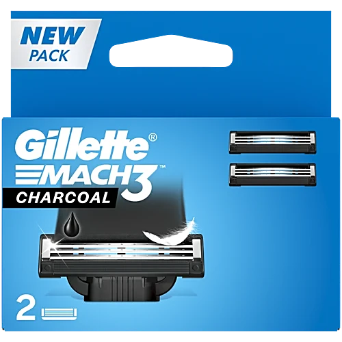 Gillette Mach3 Charcoal Shaving Razor Blades Pack of 2 Cartridegs
