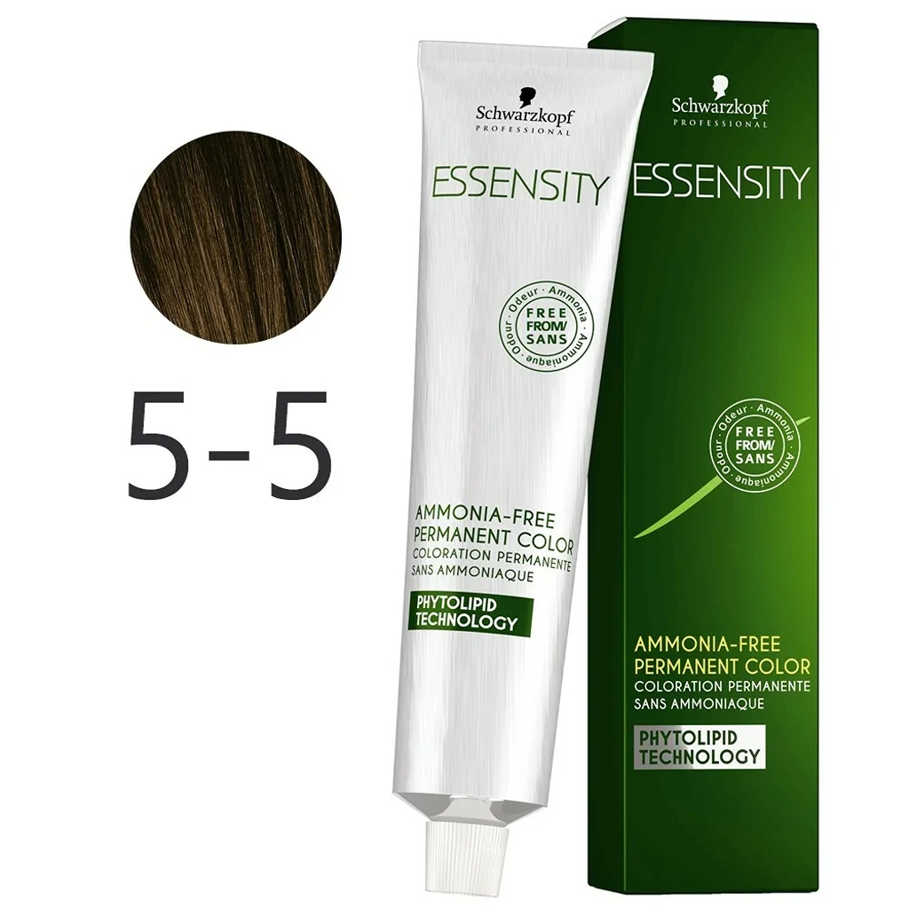 Experience vibrant color with Schwarzkopf Essensity Ammonia-Free Hair Color in shade 5-5 Light Brown Gold. This premium formula offers salon-quality results without the harshness of ammonia. Achieve a luminous light brown hue with golden undertones for a touch of radiance.