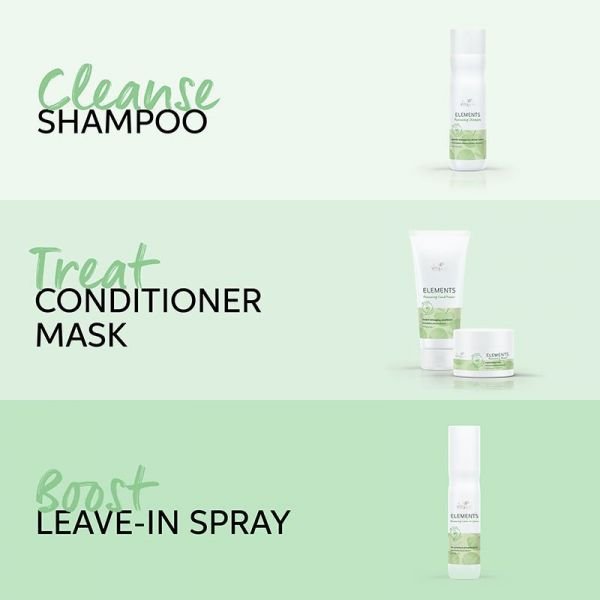 Wella Professionals Elements Renewing Hair Mask to clean, damp hair, focusing on the mid-lengths and ends. Leave it on for the recommended time, allowing the formula to work its magic, and then rinse thoroughly.